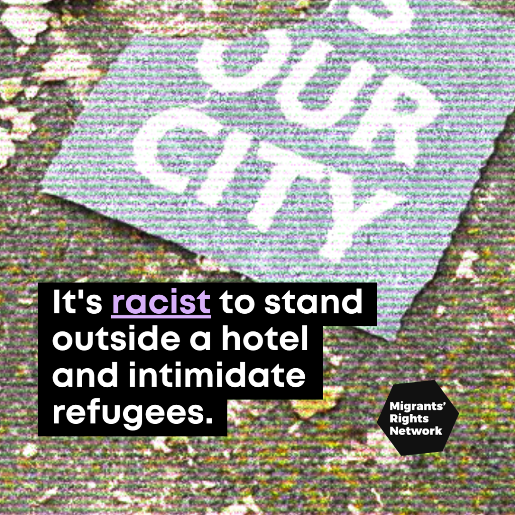 It’s racist to stand outside a hotel and intimidate refugees.