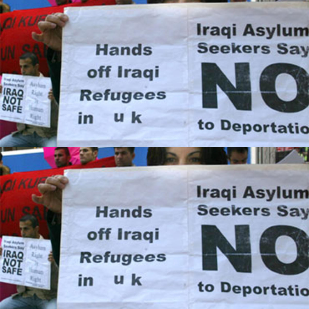 Protests on behalf of Iraqi asylum seekers in the UK, who were mistreated before being deported to Iraq. We must not ignore the UK’s role in the displacement of Iraqis through its 2003 invasion.