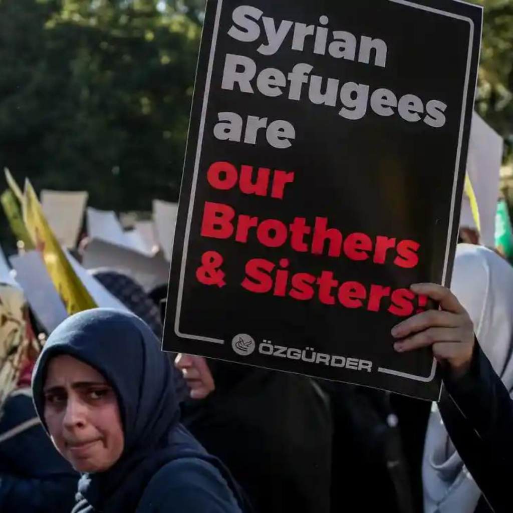 People protesting in Istanbul against Turkey’s crackdown on refugees. The UK and the West have long evaded their responsibility towards Syrian refugees despite their role in the displacement of Syrians.